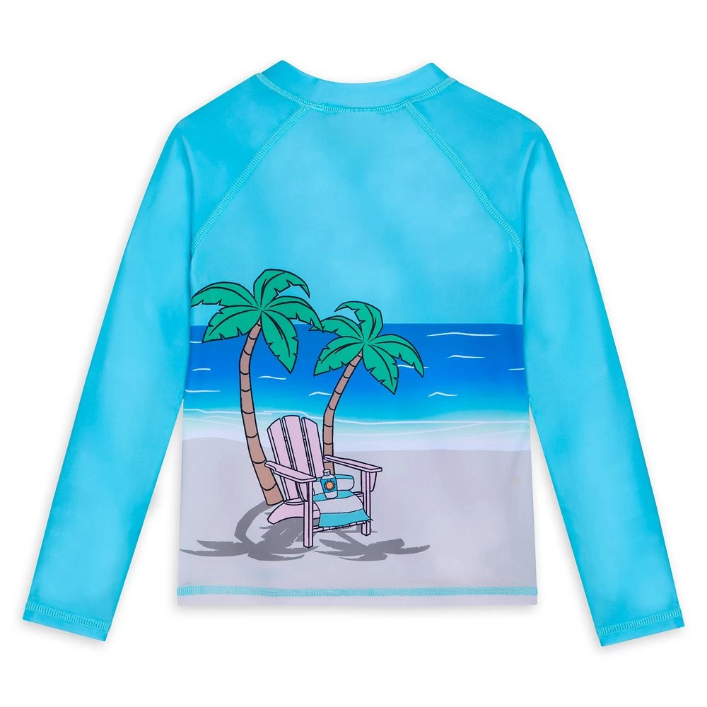 It’s never too early to dream about summer – or plan a winter getaway. Just ask Mickey, seen lounging on a tropical shore on the front of this long sleeve rash guard. On the back, Mickey saves a chair for your kiddo, but they’ll probably be too busy playing in the water and on the shore. This adorable rash guard is powered with UPF 50+ built in UV protection because you wouldn’t dream of going without.