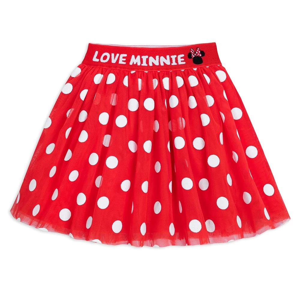 Fashionable young fans who ”Love Minnie” can show off their appreciation of our stylish leading lady with this sporty skort. This versatile combination of a skirt and shorts features a bold allover polka dot design with a wide waistband with the bold declaration and a Minnie icon sewn in.Â