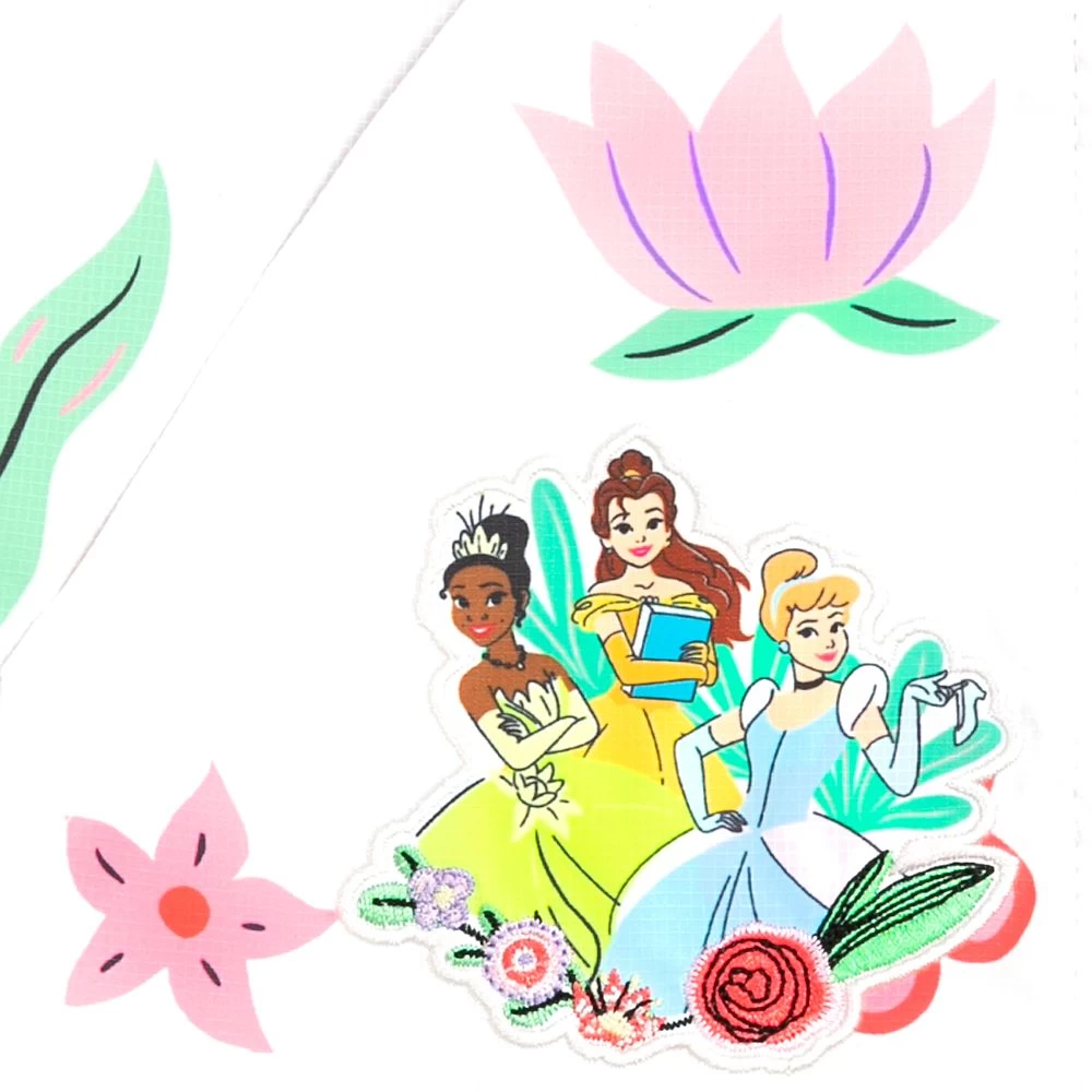 - Screen art and embroidered appliqué features Tiana, Belle and Cinderella