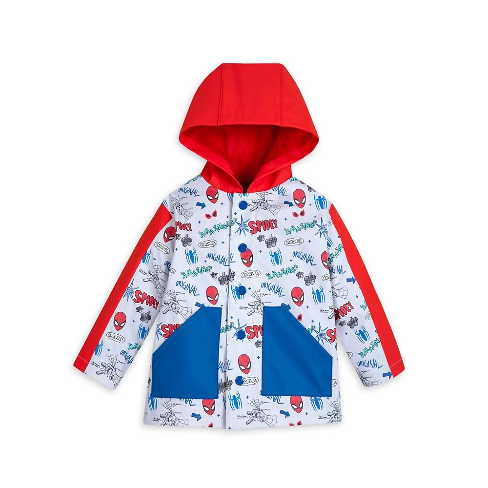 When dark clouds threaten the city, heroes equip themselves with the latest in all-weather gear. Inspired by the Disney Junior show Spidey and His Amazing Friends, this hooded rain jacket features a fun and colorful allover design that forms a web of protection from stormy skies.