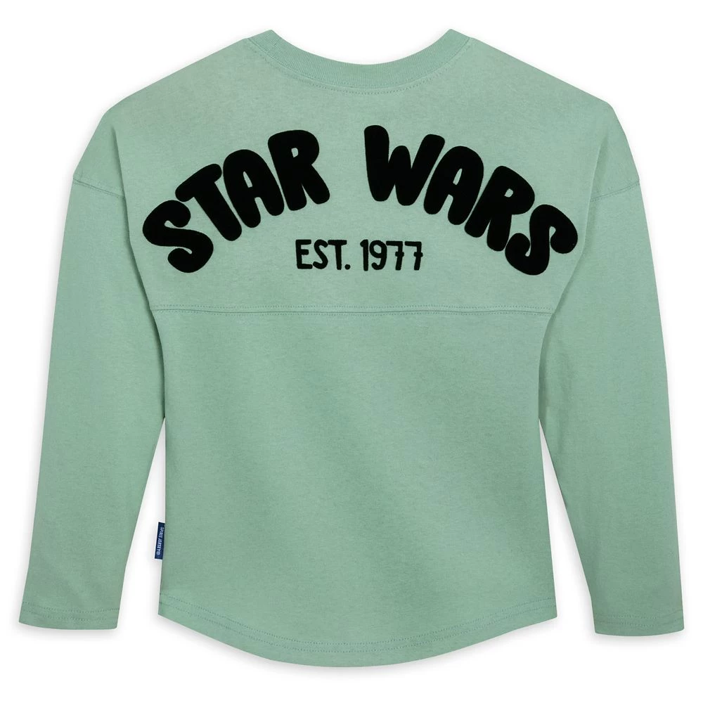 - Star Wars logo and ”EST 1977” velvet appliqué across back shoulder