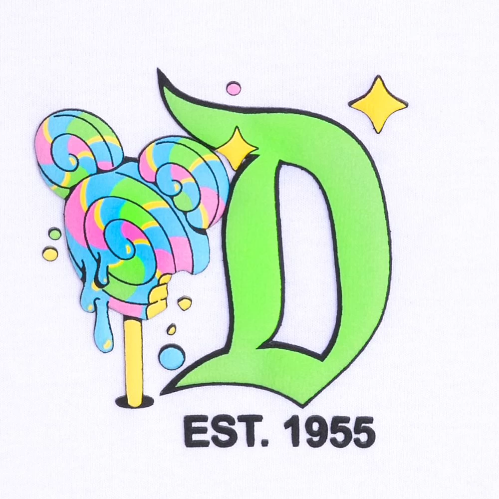 - Puff ink Disneyland ”D” logo with Mickey icon lollipop on front chest
